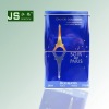 Eiffel Tower metal packing box 1. material: 0.23mm tinplate 2. size: L11* W5* H19.5cm 3. color: blue + sliver + gold 4. feature: Eiffel Tower 5. usage: perfume packing & packaging 6. mould: factory already have 7. package: 1pc/bag, 96pcs/ctn